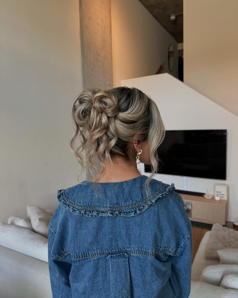 The half-up hairstyle is a great option for a bride who wants to mix the classic with the bohemian vibe. The wavy strands flow down the back, and the small flower clips offer a touch of out-of-the-box bright. This hairdo is most beautiful on long and medium length hairs, it has a smooth and natural aspect that brings out the bride’s beauty. For the bride as well as the bridesmaids, it can be easily adjusted to different wedding themes, and headpieces or veils can be added. This style is adaptable to different occasions and can be styled with a veil or headpiece as well.