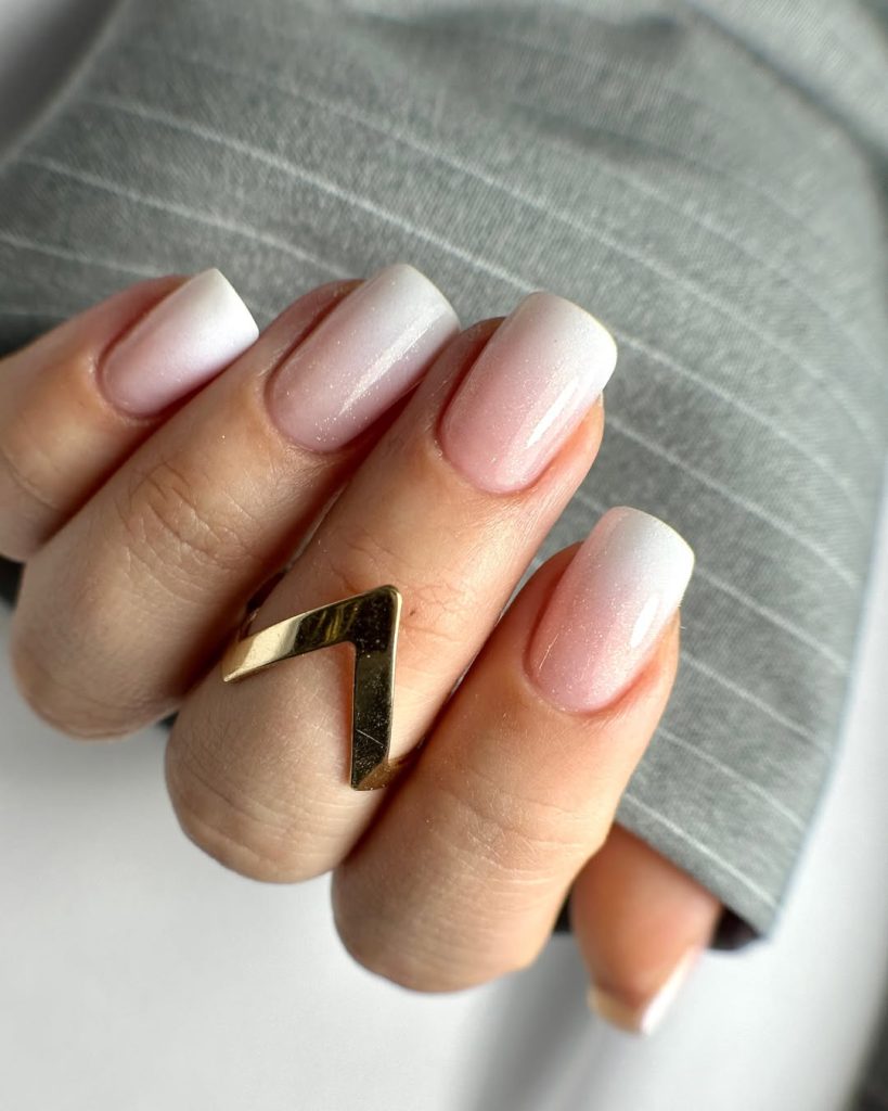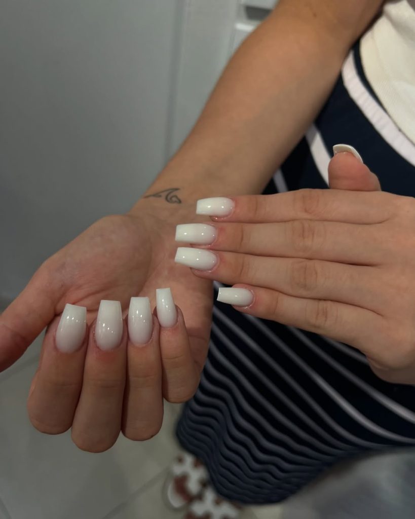 Soft ombre White Nails such as these are like wearing a silky cream blouse, instantly upping your game. The soft transition of the foundation of a soothing pink to milky white extremes blend into a quiet sophistication that oozes timeless style. They are discreet, pearl-like and elegant–the polishes that are eternal.