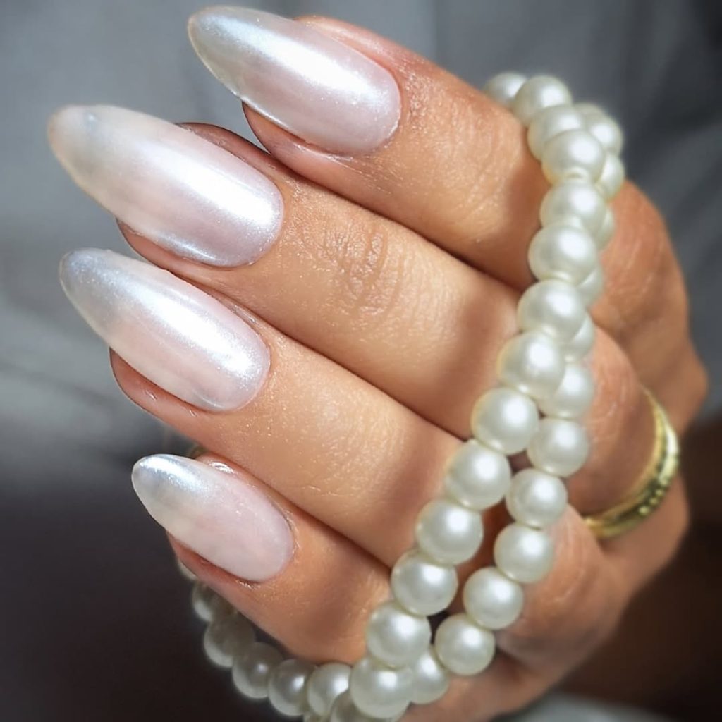 When elegance glows, it looks probably just as these pearly White Nails are. The chrome finish is polished very well and it is creamy and pearleneck that feels quite retro and rich. The soft, feminine and yet courageously bold manicure is neither glamorous, nor wild, and it can set well with pearls as well as with an evening dress.