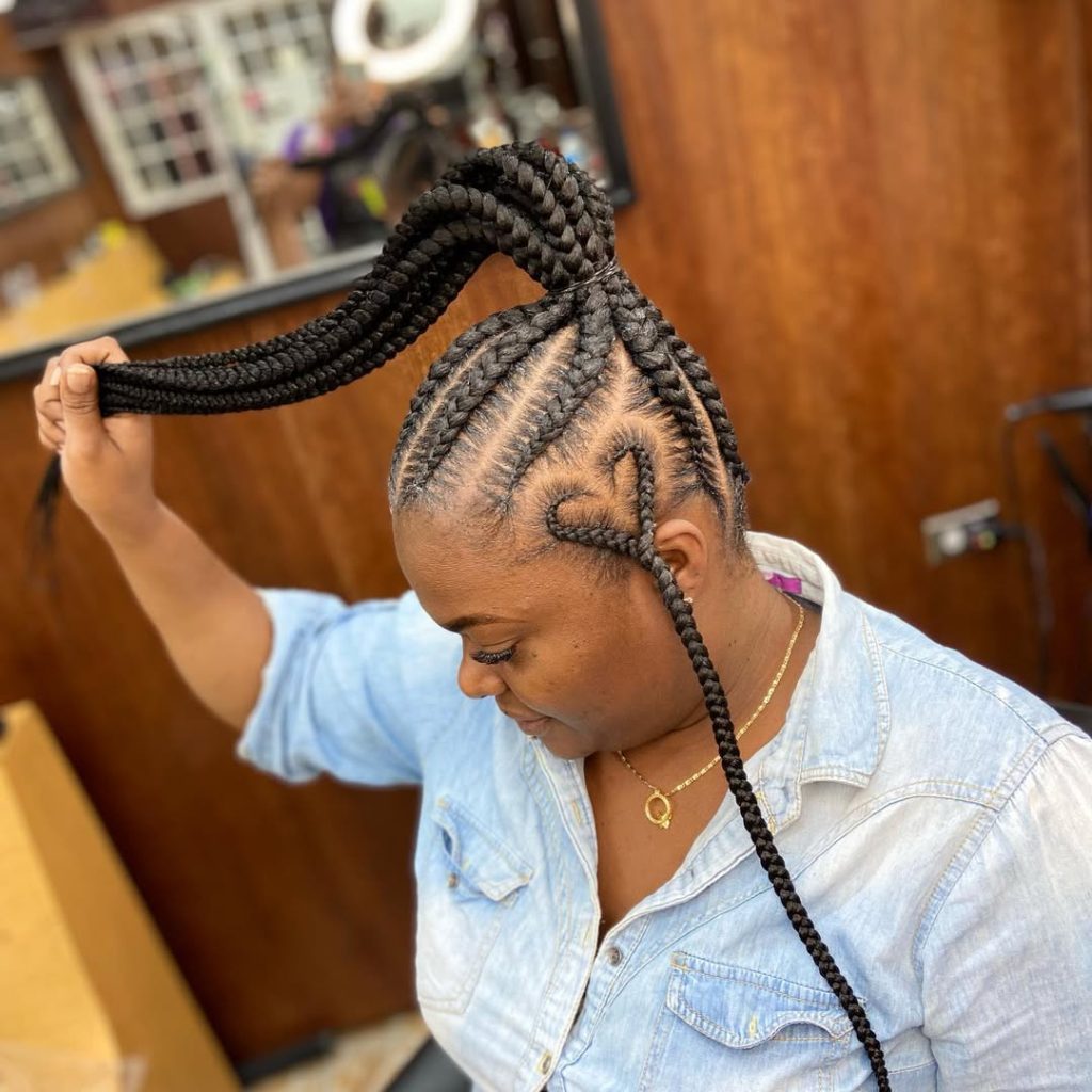 This is a good braid pattern that fits especially the black women who enjoy doing their hair in expressive ways. It is appropriate in medium and thick hair types and can take weeks when well cared of. The ponytail makes it practical and the heart shape makes it a unique concept in 2025.