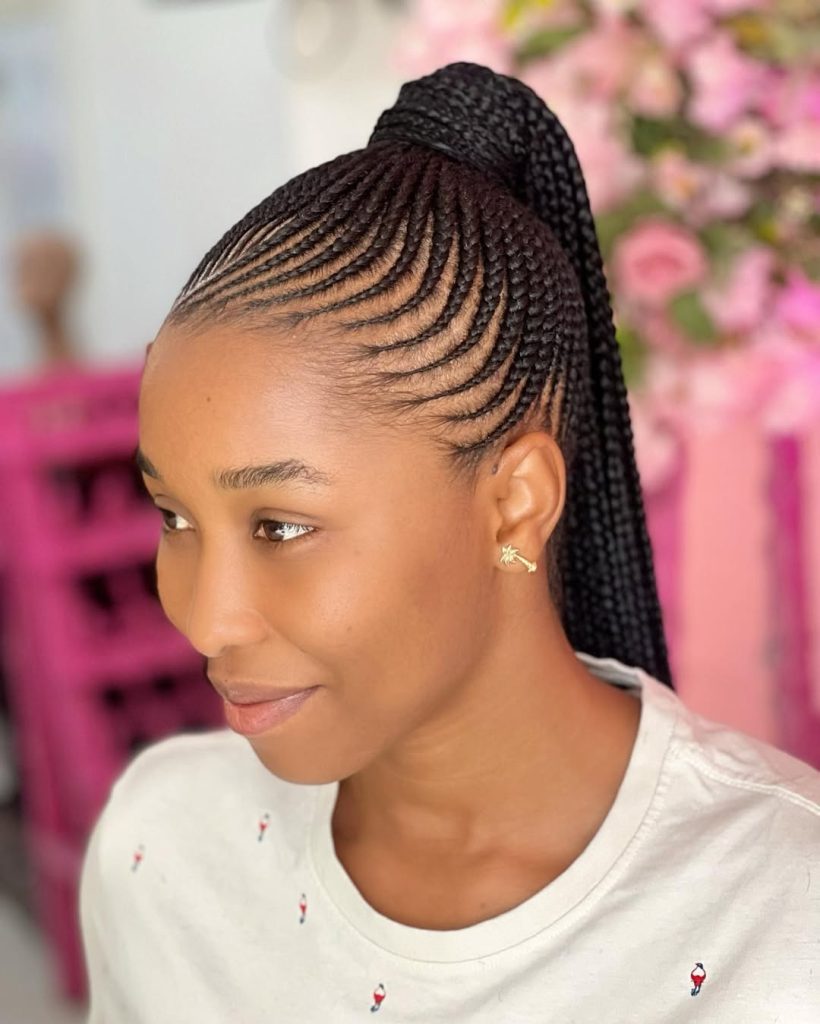 3. Sleek Cornrow Ponytail