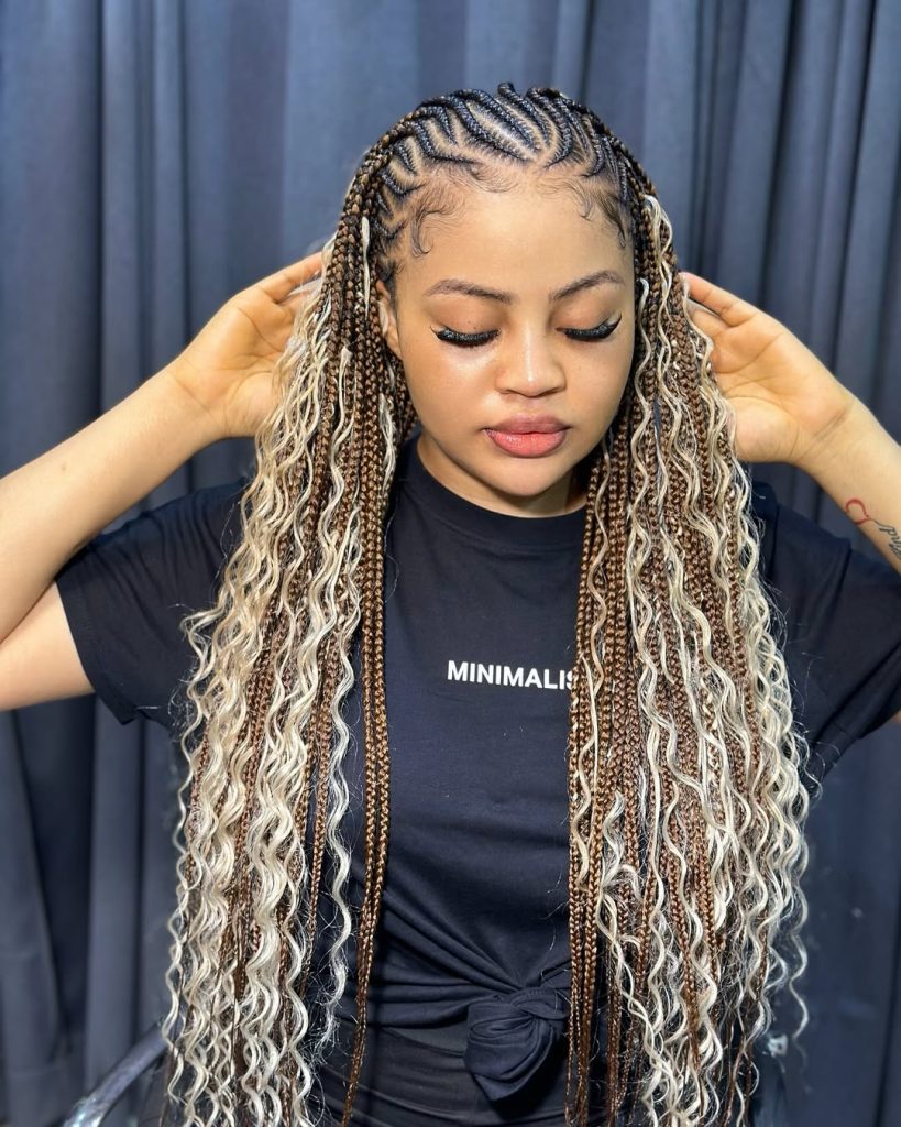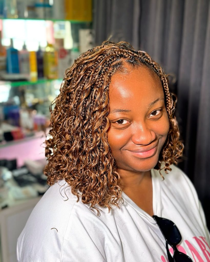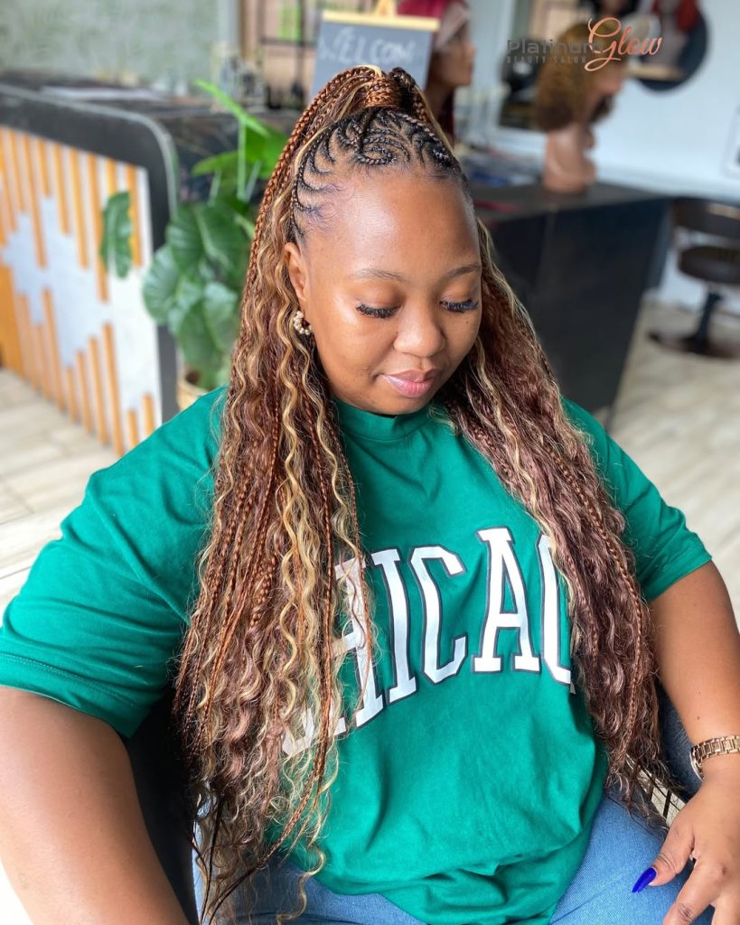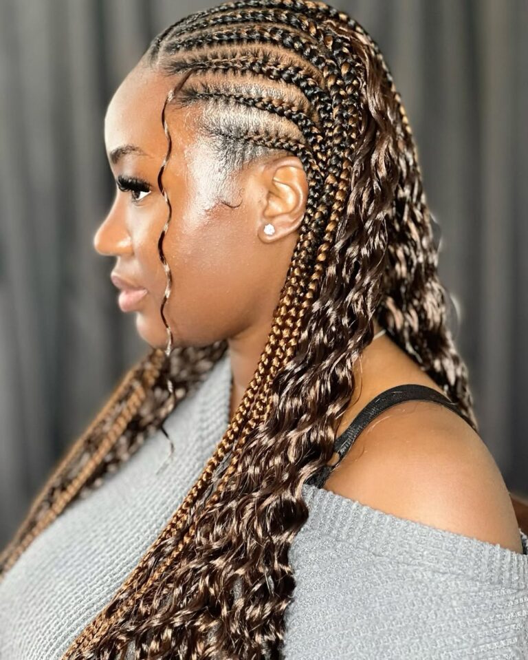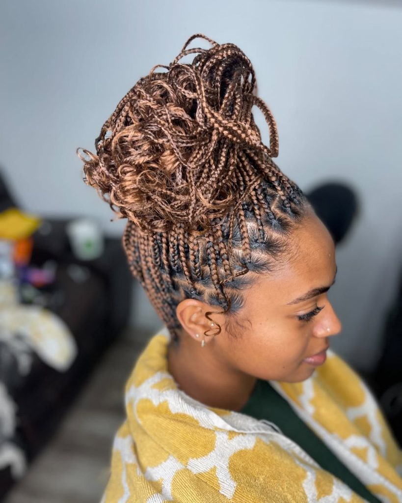 Such curly end braids are used to add warmth and color to winter styles. The golden shades built in the weaving of the braids reflect the light, and the curls provide a bounce and a touch. It is a hairstyle that is fun and sophisticated at the same time – an ideal manifestation of the power of black women to combine tradition with modernity.