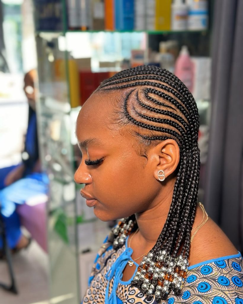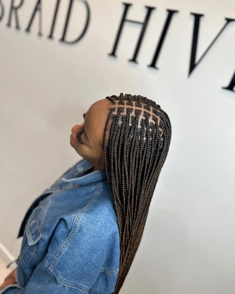 In case you want braids with a little twist, this wave-style cornrow can provide it. The curvy and flowing lines have the scalp as a part of the art and your hair as a canvas. It is not too extreme but still stands out as a contemporary version of cornrows that will be a fresh winter of 2025. Imagine a combination of tradition and high-fashion art.