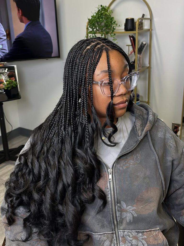 It is a little girlish and flirtatious to combine smooth braids with loose curly hair at the ends. It is a mix of both worlds in the sense that it is structured at the top with flow of movement and softness to the bottom. It is entertaining, personality-filled and a cute way to change the usual braids in winter. Curls are what give it the romantic touch and make it seem easy and natural without jeopardizing the protective qualities of braids.