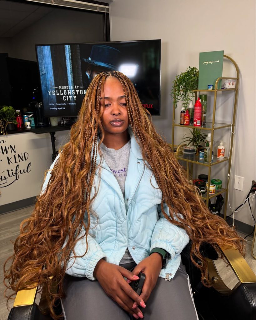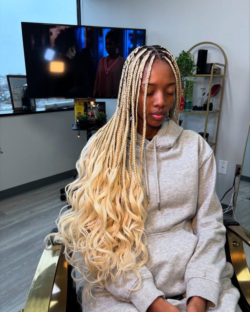 Such a refreshing glow it gives when plied in the hair in the form of the wavy ends of the blonde braids that are nearly bringing a bit of the summer sunlight into the winter season. It is a sunny, fluffy, and personality hairstyle. The co-plaiting of the roots and the loose shoulder length waves gives a careless but elegant appearance- a must to everyone who wishes to have a natural and glamorous look of their hair simultaneously.