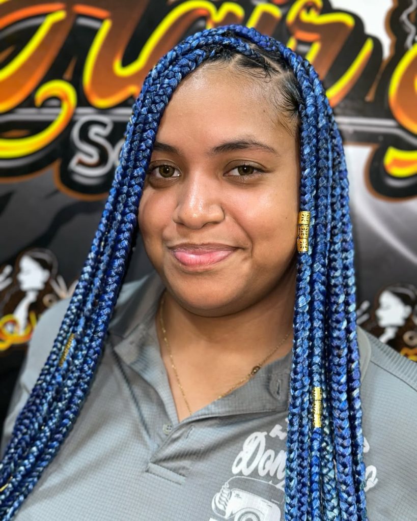 Winter hairstyles do not have to be quiet — there are cases when it is about standing out. These electric blue box braids are an instant energy booster and fun-filled with a bold appearance that makes you feel young and stylish. The contrast between the color and the darker details makes the braids stand out and creates a contrast that is playful enough and at the same time classy enough to be worn anywhere. It is the type of motivational content that doesn’t even need to explain its reason why you will adopt something new simply because it is fun.