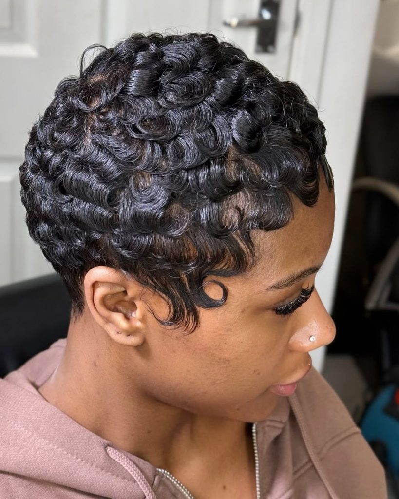 The style is ideal to black women with short hair that prefer low-maintenance but still want something to make a statement. It is a great alternative to parties, business or daily use. The waves can last as long as days with the right setting lotion and a silk scarf at night and this makes it one of the most practical but aesthetic ideas in 2025.