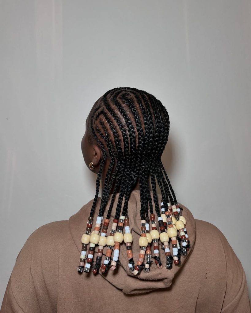 The style is very versatile as it suits both the young and the adult black woman. The braids are simple to wear and the beads can be made to suit your outfit/mood. It is a simple hairstyle with or without school wear or even casual weekend attire that is also full of 2025 hair-inspo.
