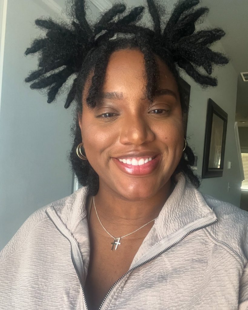 Natural locs in the form of pigtails inject such a careless level of fun to a conventional appearance. They do have the feeling of being young but at the same time feel like grown-ups and confident, which makes them an adorable and easygoing winter wear. The manner in which the locs set the face is also soft and the ways in which the pulled-back areas create a sense of structure in a way that is practical and stylish simultaneously.