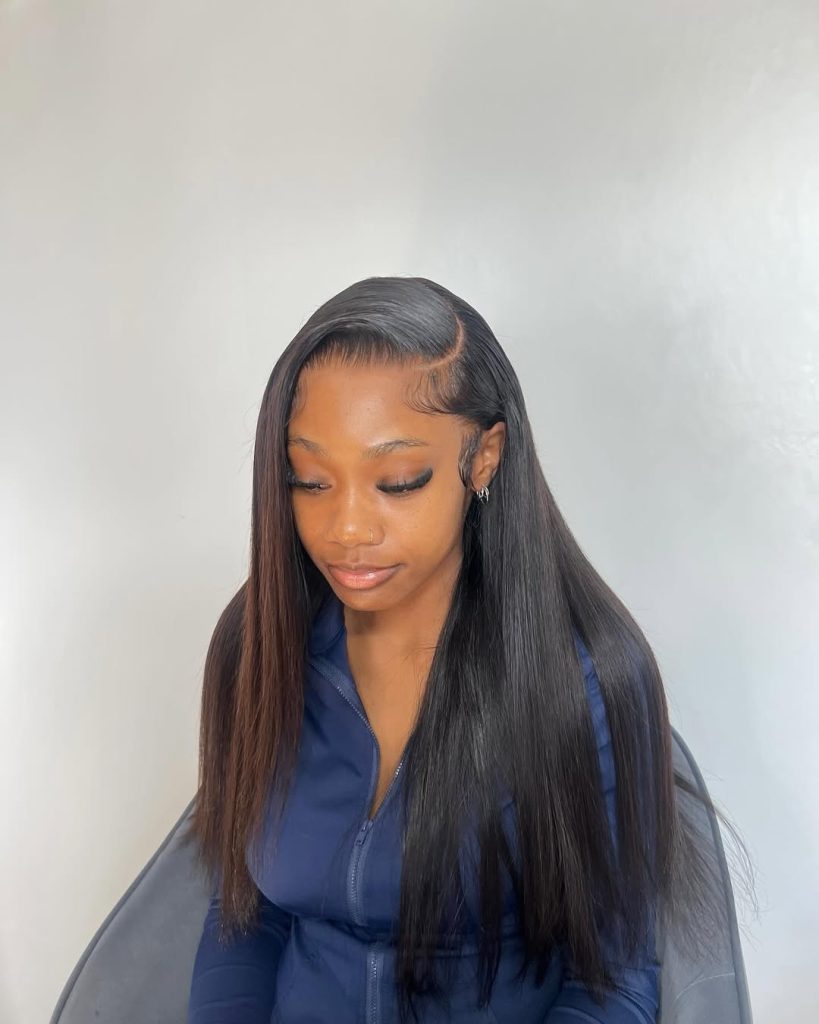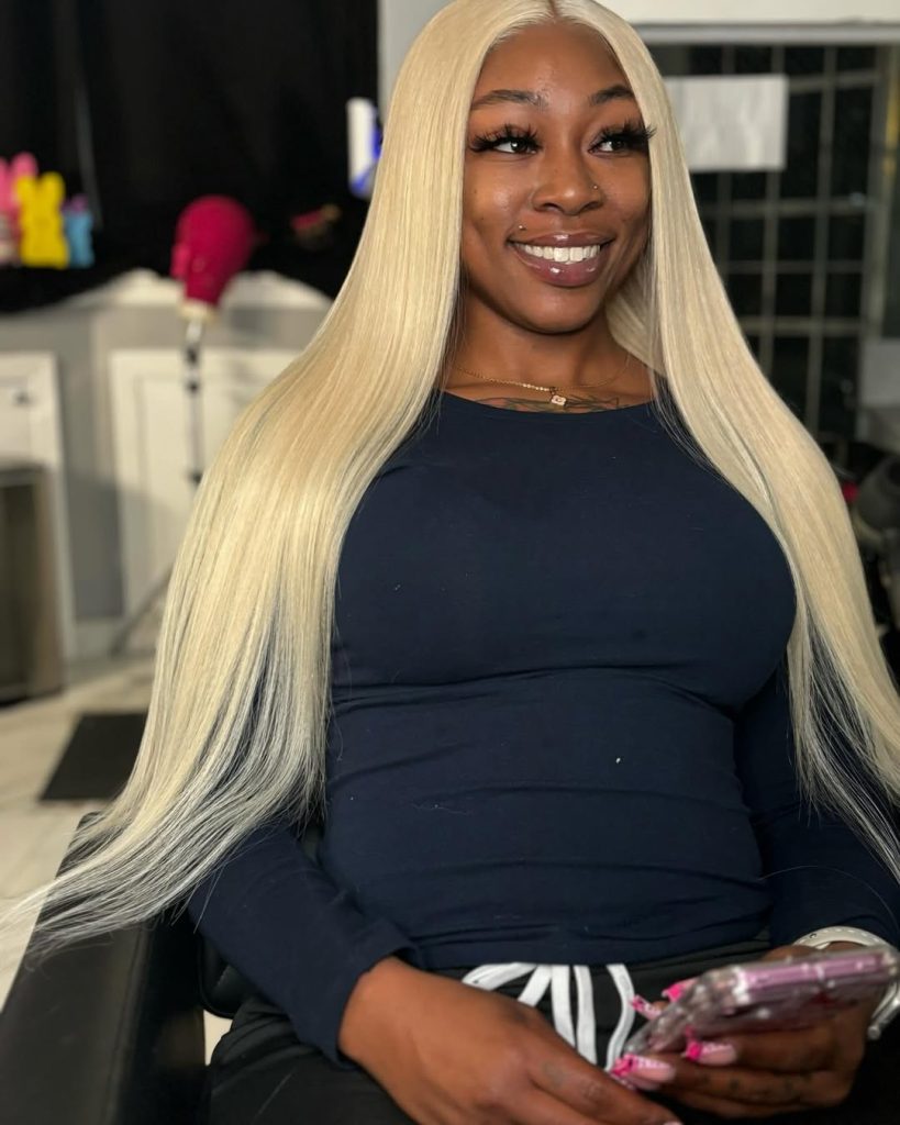 Platinum blonde is the change you want to make in case you are willing to take a risk. This slender smooth design is bold, shiny, and contemporary that exudes that fearless appearance that makes it an ideal match in 2025. The icy blonde color is very striking to the darker skin color and makes it high-fashion.