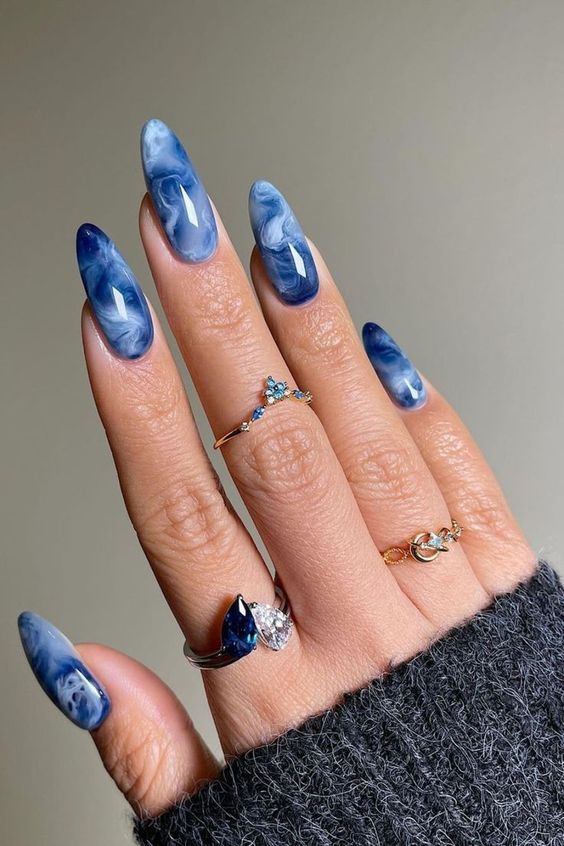 3. Bold Blue Marble Nails