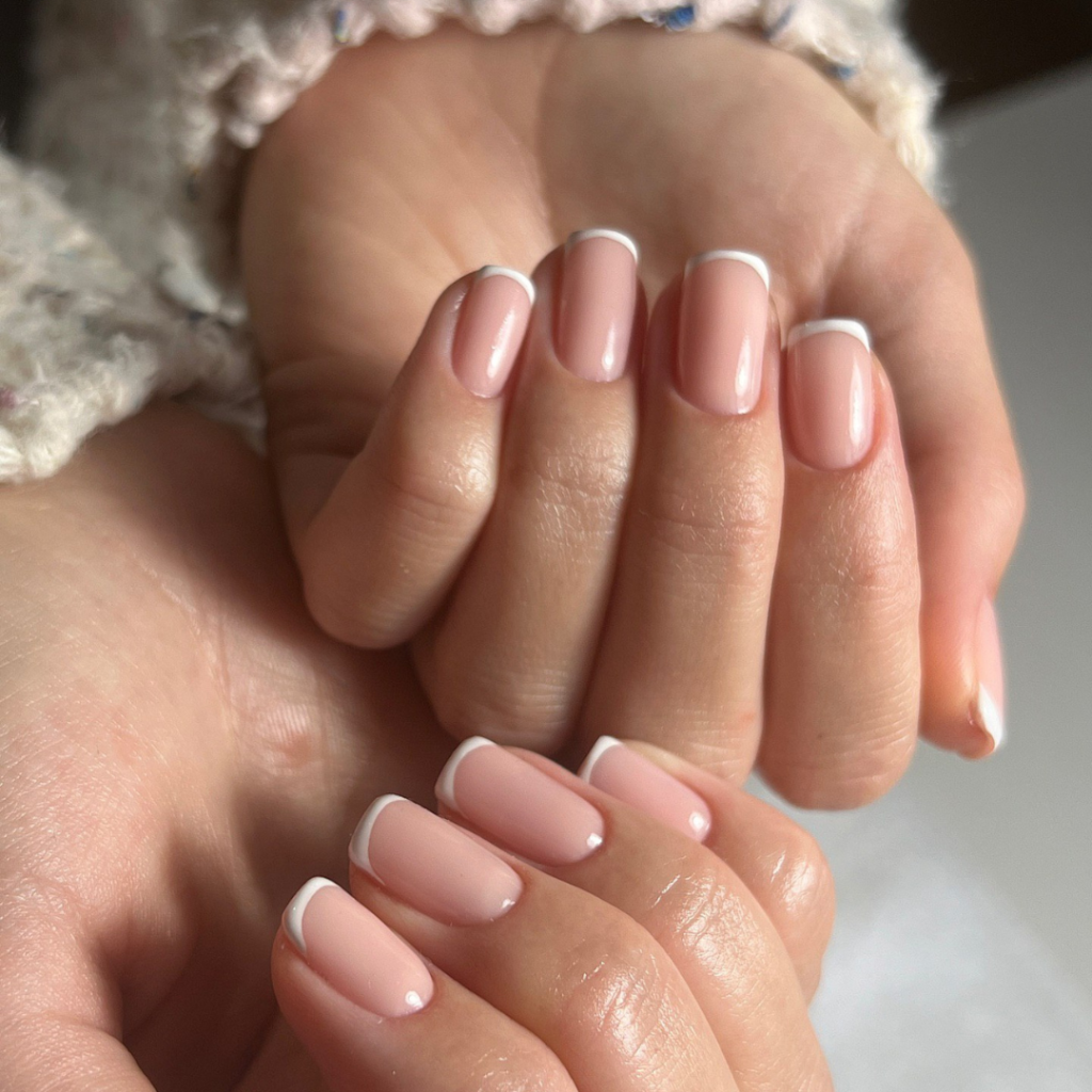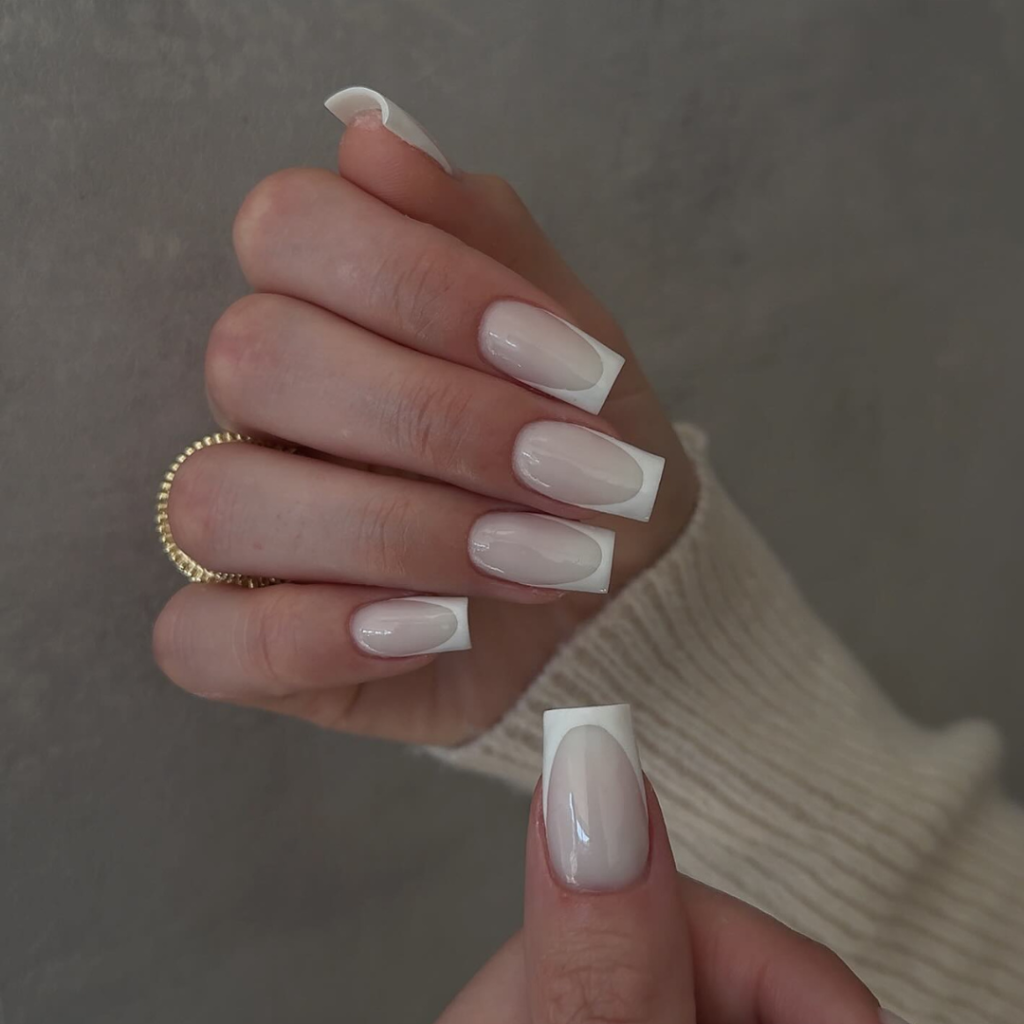 This style presents the white tips as sharp and precise, thereby accentuating the clean lines against a pale pink base. This manicure is the image of the classic French tip, completed with an impeccable touch, hence, it is a timeless choice for work and formal occasions where a sophisticated look is required.