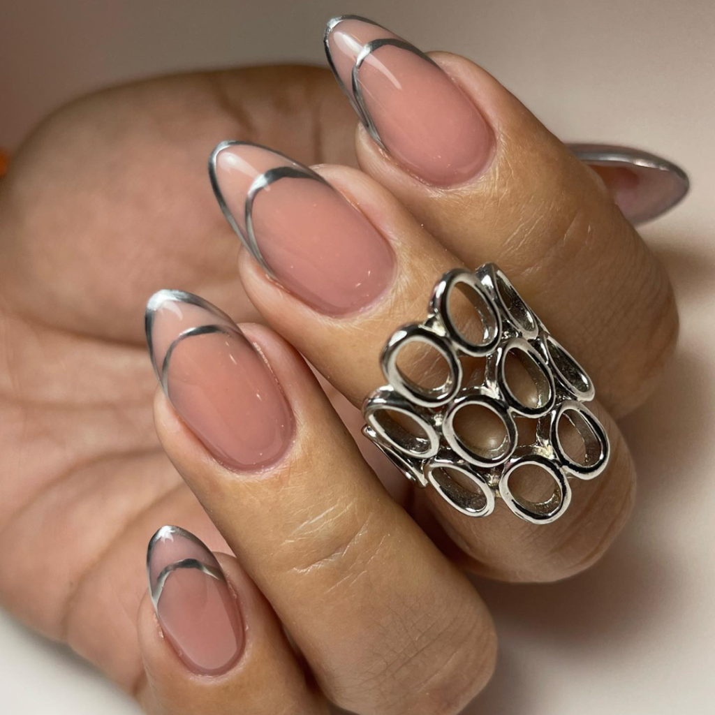 The Angular French Tip on Almond Nails is not a simple decorating style for the nail salon but a bold approach. It is a twist of declaimed white tip by extending it in sharp angular manner on the edges of long almond nails. This adaptation would be acquired having the degree of fashionability not only through enchancement of the visual stimulus but also five knuckles in elongation resulting in a continuous line. This modern adaptation not only turns people’s heads but also makes fingers look longer, so it becomes the favorite for ladies who intend to mix classic and trendy styles together.
