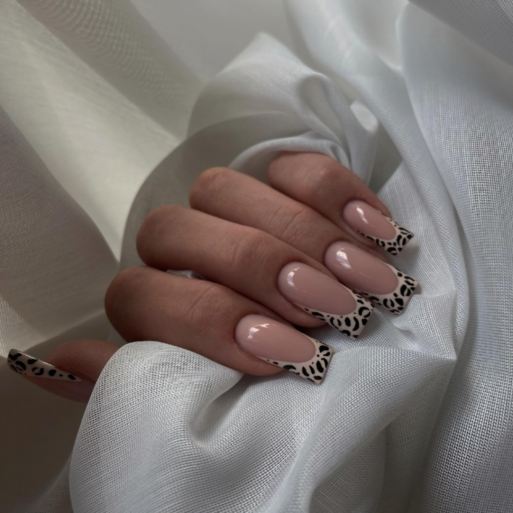This audacious configuration toplement of leopard print the tips over a soft pink base, is the boldest contrast and the absolute trendy rendition of the original French tip. It is perfect for the ones who want to be the center of attention, especially with this style combined with bright accessory that can change a normal look into an extraordinary one.