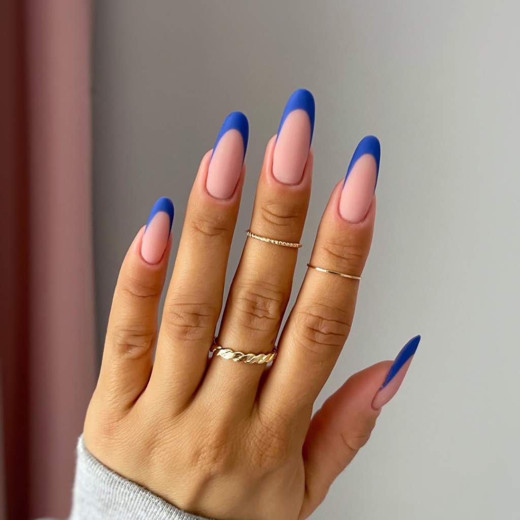 The deep blue tips on a light pink base create a great interplay between the colors and express the sole idea of this artificial nail that fits very well to the modern style, this is just simple and easy to learn knitting. This scheme is unique and very modern that fold people who are into color and the big skirt into their daily outfits, making it especially adaptive by casual or formal wear occasions.