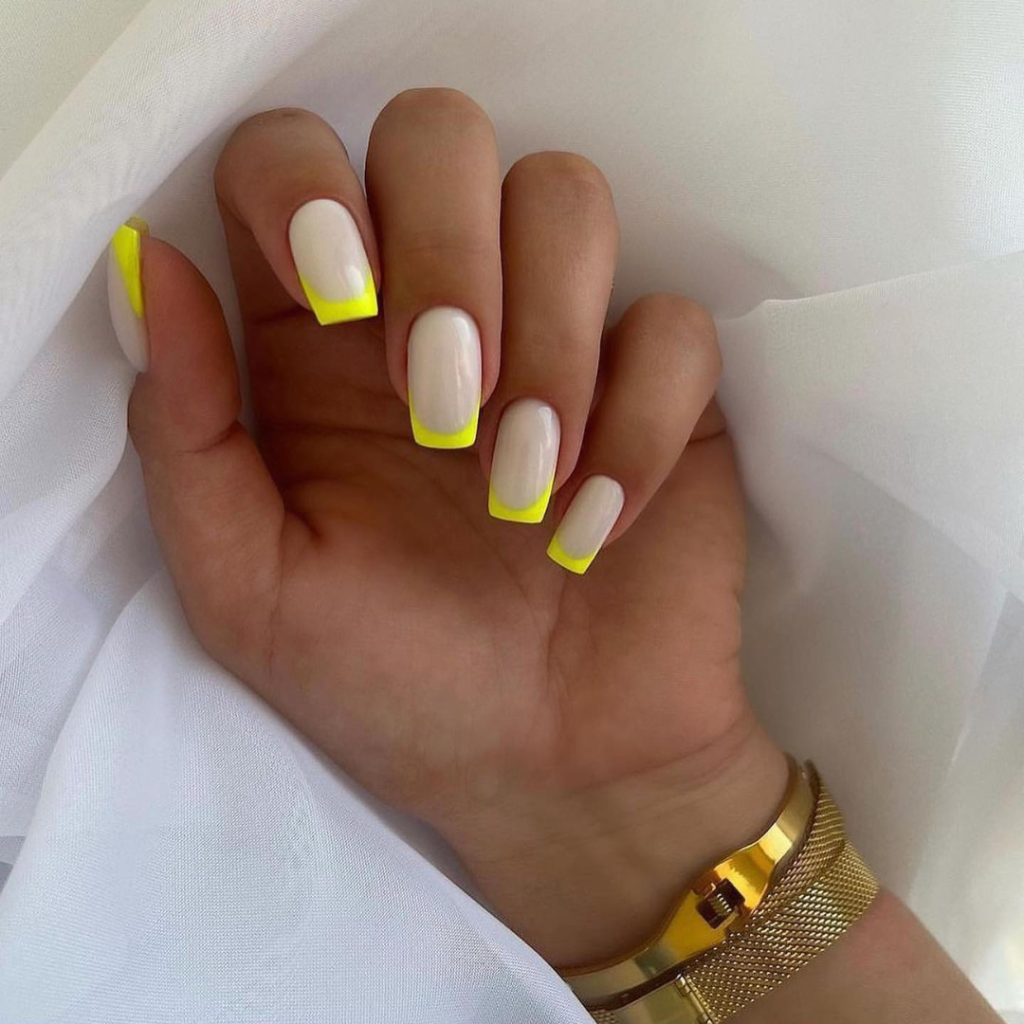 The lemon-yellow accent at the end of the nails as a touch turns this white color into a strong white and this one differs from kil kburv. Catches the attention of the people around and is associated with the feel of a young and lively person. This adaptive piece can be used for both outdoor summer activities and indoor/external occasions that are colorful and bright.