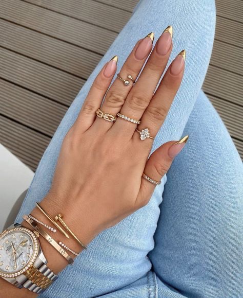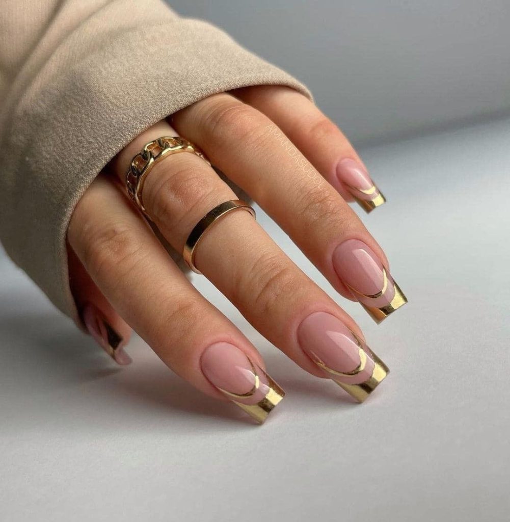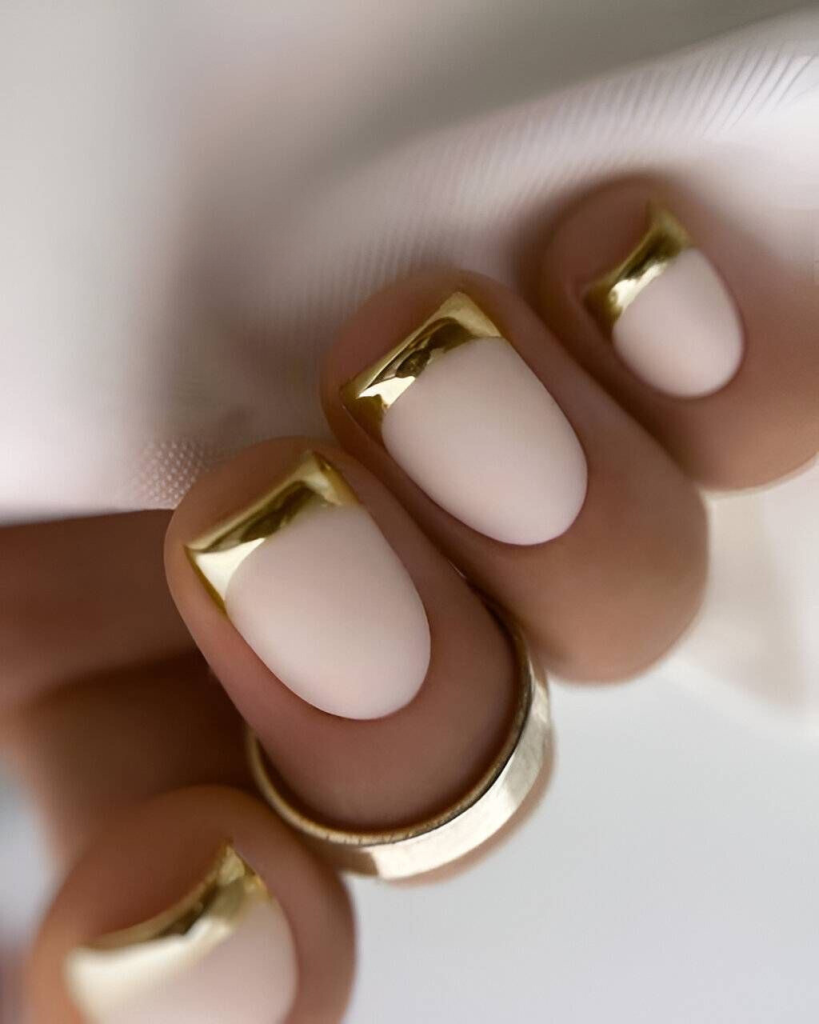 24. Elegant Edges: The Sharp Contrast of Gold and Nude
