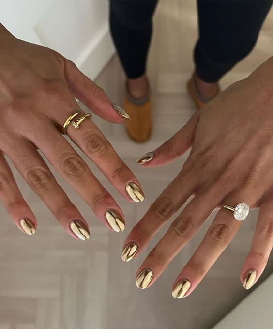 Gold chrome nails deliver a wide variety of styles to exhibit your individualism, whether you opt for the simplicity of nude and gold or the vivid presence of textured designs or the glimmer of futuristic holographic finishes. With that we are through with this shiny journey, we encourage you to use these models as a springboard for your expression and seek the way to brilliance. Discuss the golden nail that you have experienced, display the design that you have admired the most, as well as be always in a shining state due to the fact that nail art has the potential to bring new dimensions into your reality.