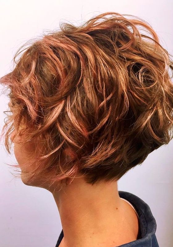 This fashionable, disheveled wavy bob embodies the concept of effortless style. Loose curls are complemented with hints of genially translucent colors, which assist in creating a dissimilarity of the overall picture, thus making the hair look multilayered. Besides, partly angled bangs outside are situated in a way that makes a round face look more elongated and delicate. Such a haircut model is suitable for the round-faced women; the haircut softly surrounds the features thus softening them and delicately enhancing the face. Innate sea wave like structures caught in the autumnal sunlight of the gamma rays of pink-red color achieve the gorgeously lively and thick appearance of the hair. It’s one hairstyle for women over 50 to look youthful and still be on-trend that they will be free and directly blow-dry their hair.