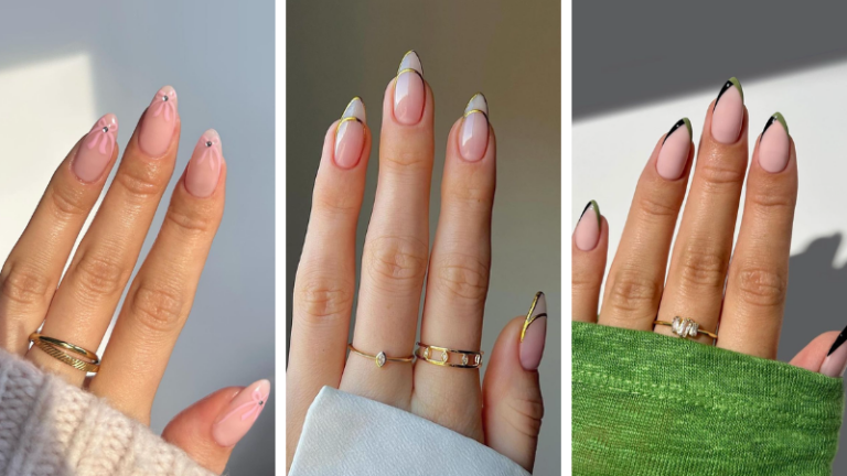 Want to give those classic French tips a twist? Add tiny floral designs! They’re perfect for spring and oh-so-chic.
