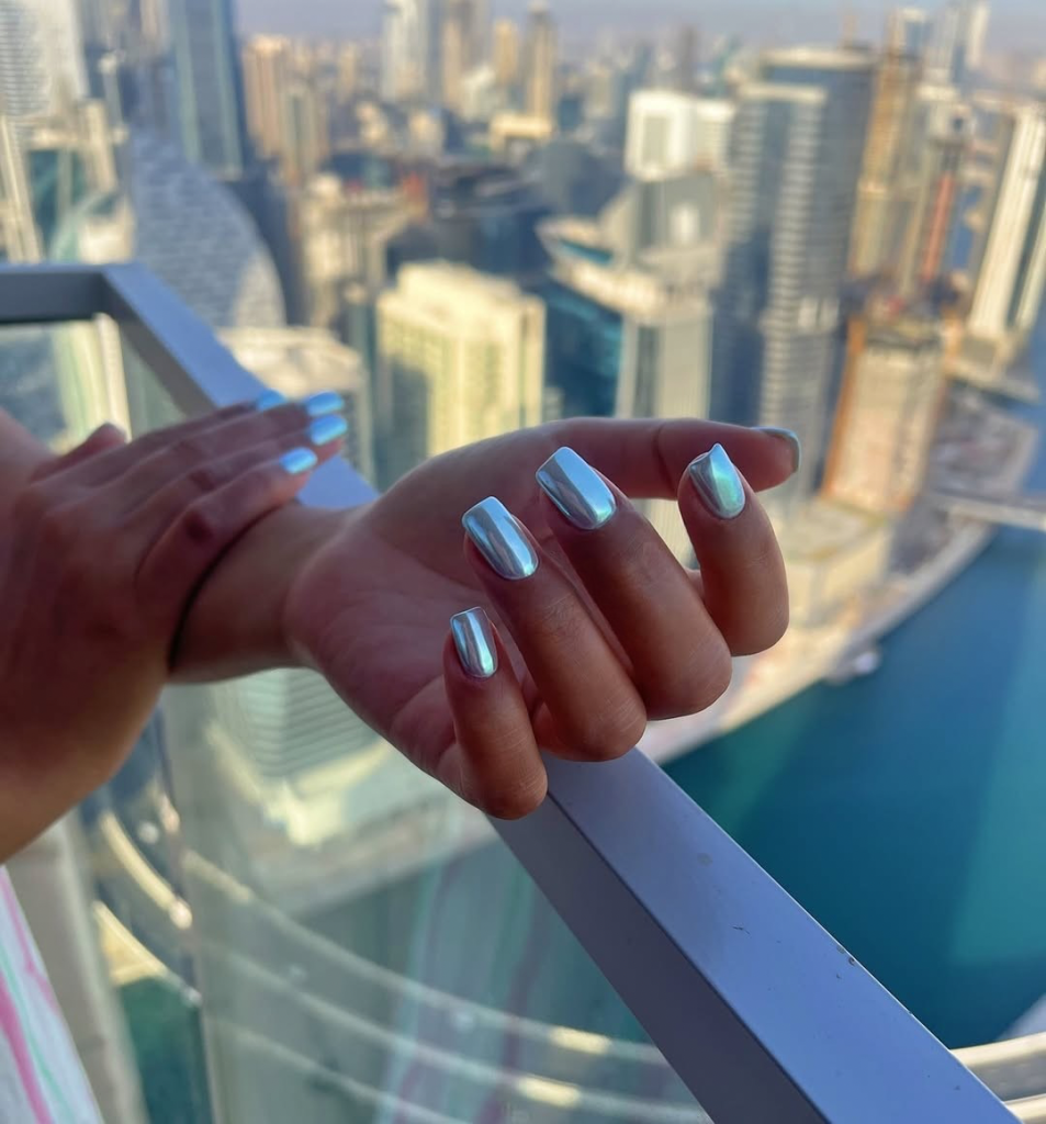 It’s like watching the northern lights — using your nails, you’ll find light pink, lilac, glistening blue and shining chrome all around you. They project a dreamy, visually impressive style which attracts many and makes them some of the most loved.