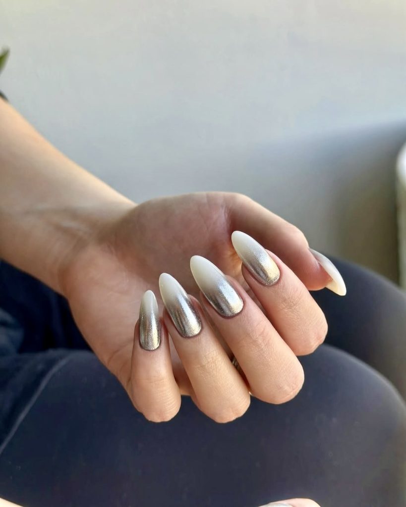 Mixing frosted white with shimmering silver with this ombré chrome fade gives you a stylish look that is both soft and commanding. It reminds me of a child of icicles and moonlight, so its look is a little soft, gorgeous and clearly made for 2025.