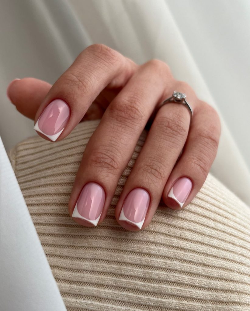 Short square nails are ideal for this design. If you’re on the hunt for white nail ideas 2025 with a twist of pink, this is a gentle standout. It looks particularly good with milky or beige garments, and creates a tidy and fresh appearance to hands no matter what age they are.