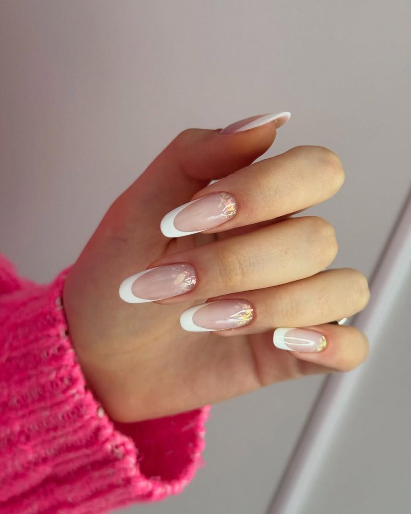 This is a nice alternative to white tips and would look great on oval or rounded square nails. If you’re into french nail ideas 2025 that blend creativity with classic charm, this one is a must-try. Take advantage of gold jewelry or pink sweaters with a light touch that will give a feminine edge.