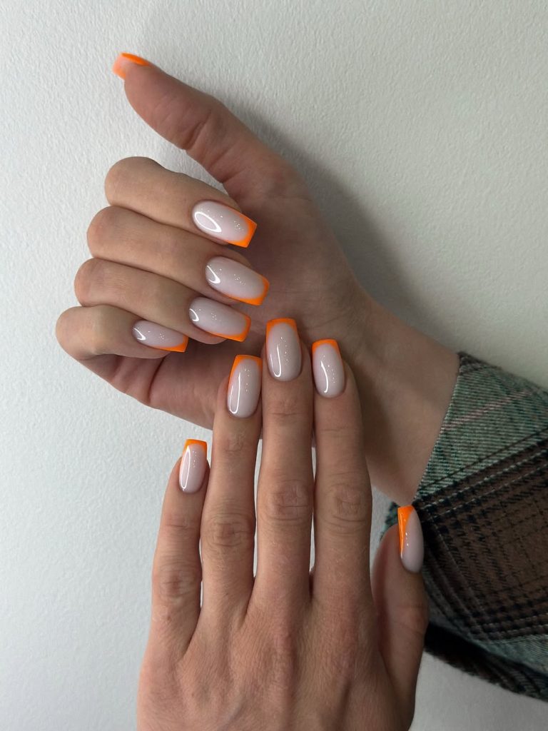 Neon attracts a lot of attention and this bright tangerine french tip is a statement. It is bright orange, which stands out against a light neutral background, which is energetic and self-assured. It’s fresh, exciting, and absolutely made for summer.