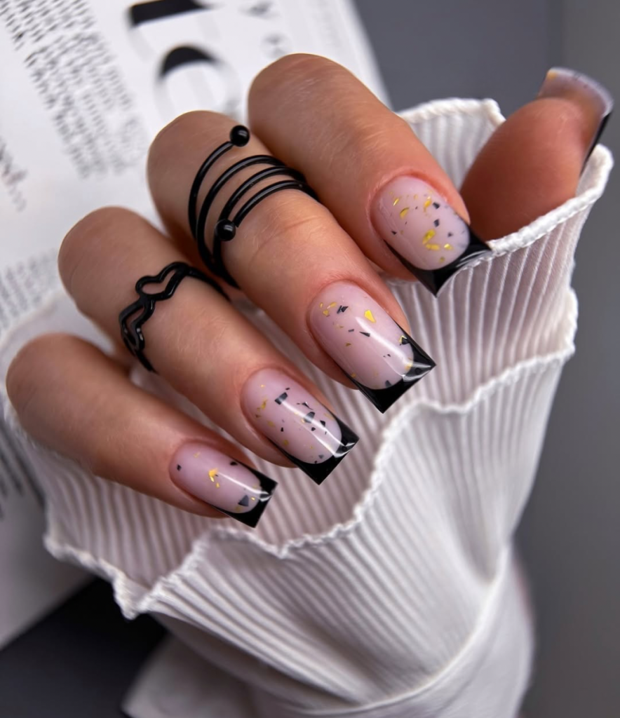 Such a design works best with long square nails and suits people who are experimenting with black nail ideas 2025 and have a more creative approach. If you’re someone who wears structured blazers or sleek monochrome outfits, this mani will complete the look with flair.