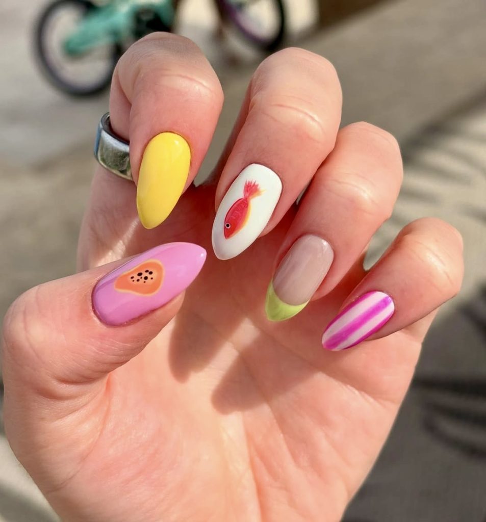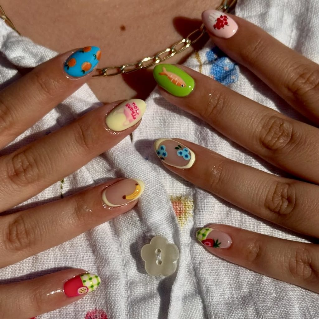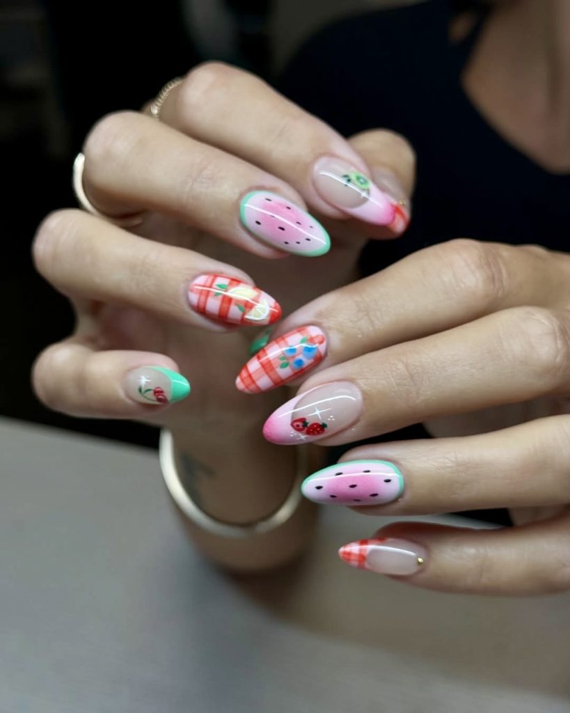 3. Fruit and Picnic-Themed Nails