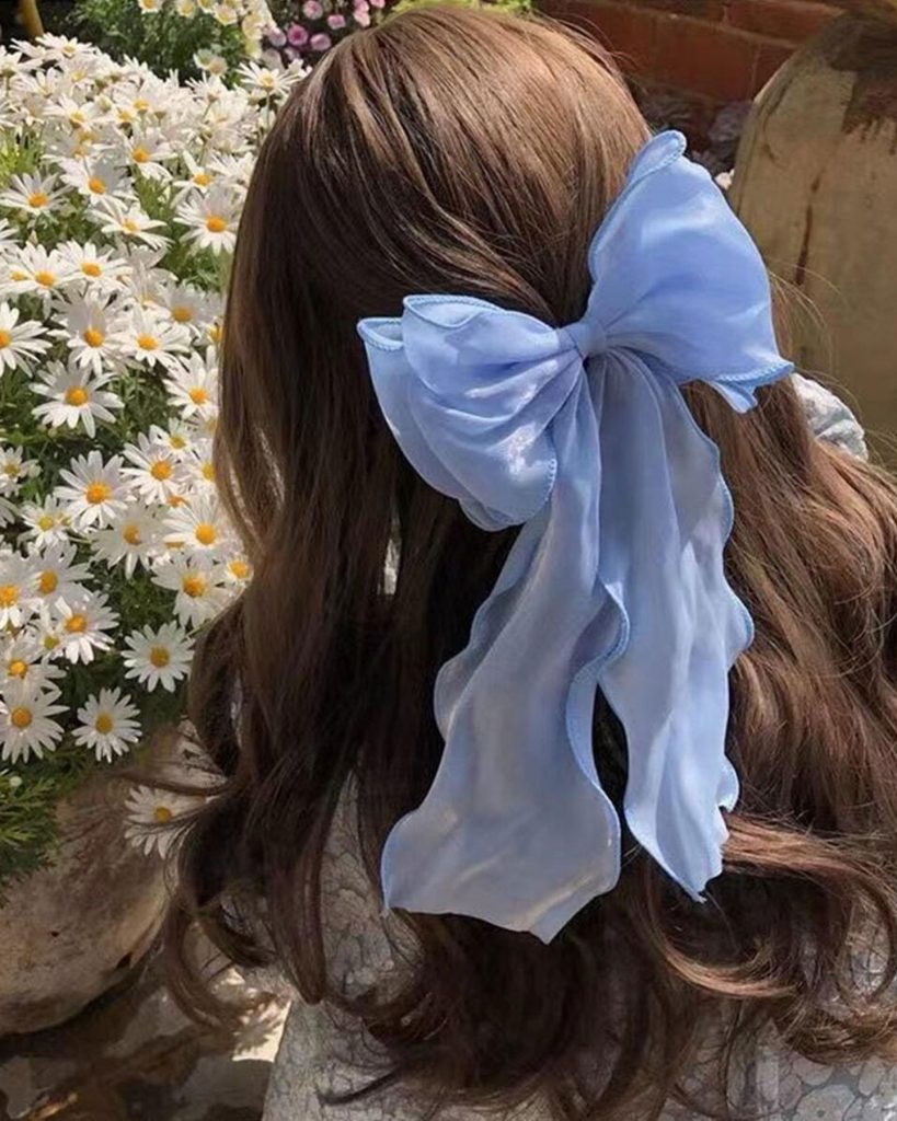This loose wave hairstyle gets a charming and feminine touch with the addition of a flowing pastel blue bow. The big ribbon is a playful but neatly organized element, which turns the look into the ideal one for school events, leisurely outings, or sports events like a soccer or volleyball game. This style is mainly for mid-length or long hair, as it underlines the beauty of the hairstyle.