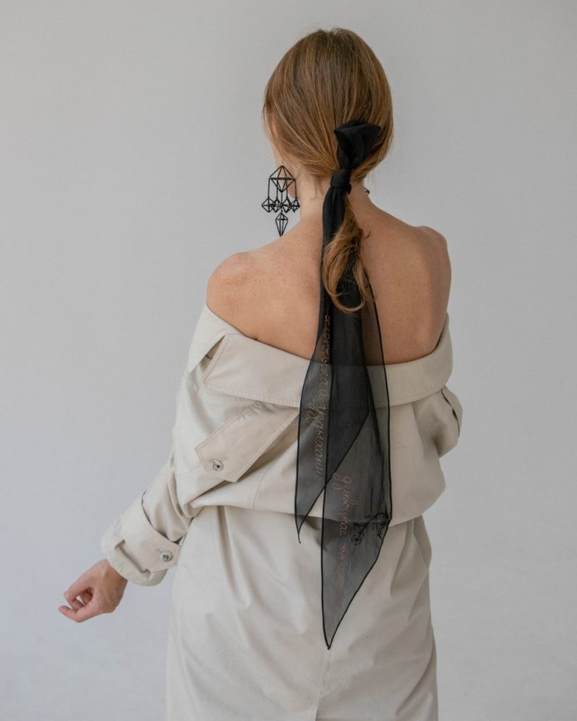 32. Minimalist Low Ponytail with a Black Sheer Ribbon
