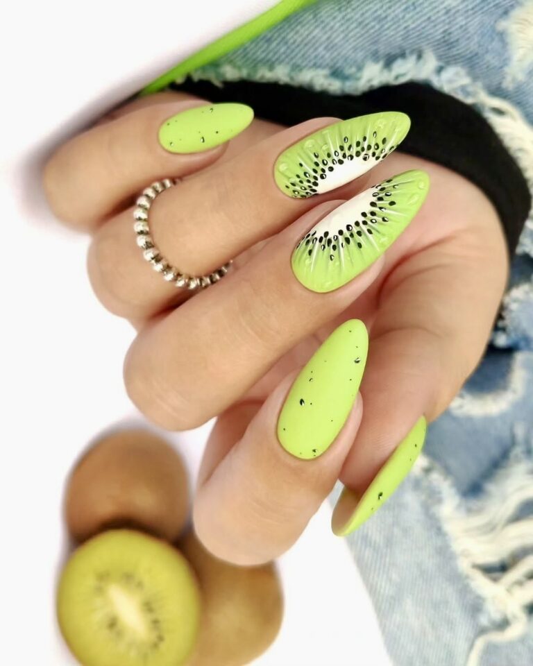 29. Kiwi-Inspired Nails with Matte Art