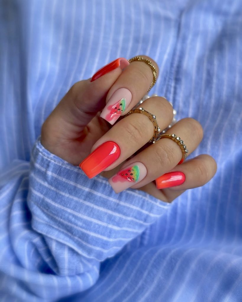 13. Juicy Watermelon Nails for Fun Summer Days