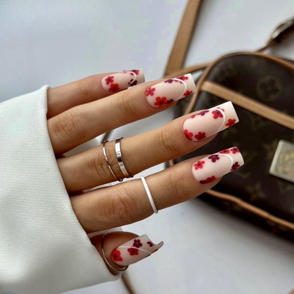 This squared nail effect with a neat design, is for strictly floral styles lovers. The white base gives the chance for the red and purple daisies to suspend and this results in a delicate yet adorable look that is not overstated. If you want to have a mix of purity and simplicity with a twist of fashion, this is the best option for you. It is a brilliant match for neutral clothing, linen fashions, and for your everyday casual wear.