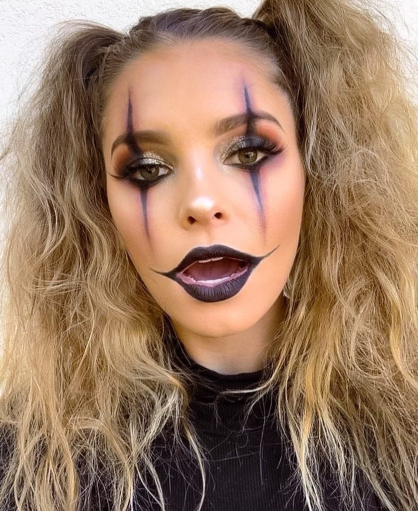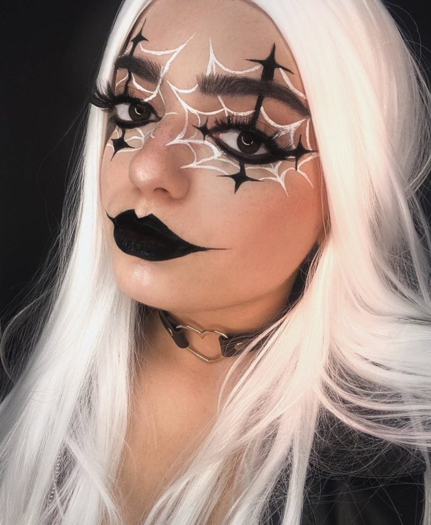Perfect on people that like a facile et rapide sorcieree style. You can make it easily with a white face paint and fine brush. The makeup will look best on light and medium skin tones and warm-colored hair. Extra points even when you use an over-the-top hat and enjoy the full witchy necklaces!