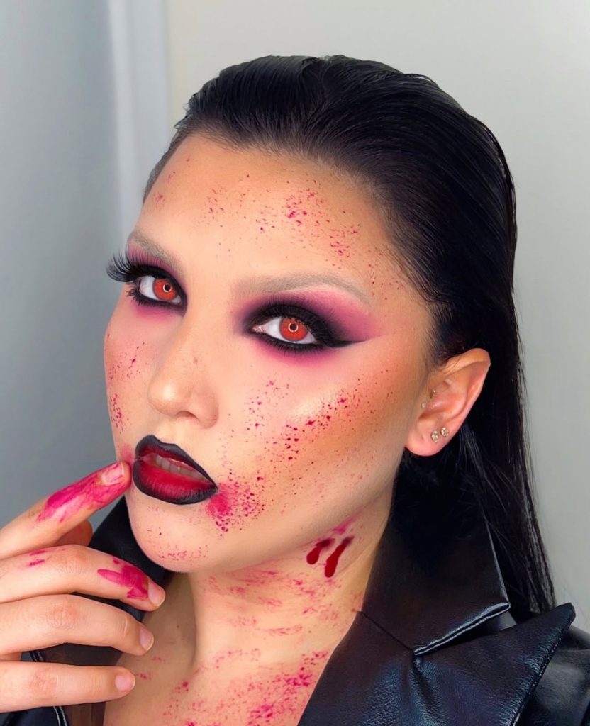 It is a femme facile style in case you wish to test your toes on gore without turning into horror. Women who have an olive or golden undertone look great in it and it is particularly flattering on women with sleek hair. All we just need to do is to apply a gloss glaze and some theater fake blood or red pigment powder to make the stain appear multidimensional.
