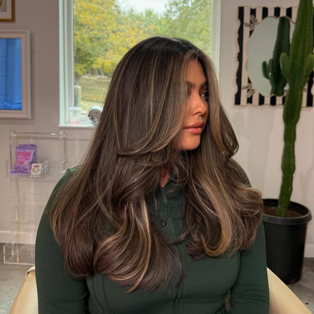 11. Voluminous Mid-Length Layers with Face-Framing Highlights