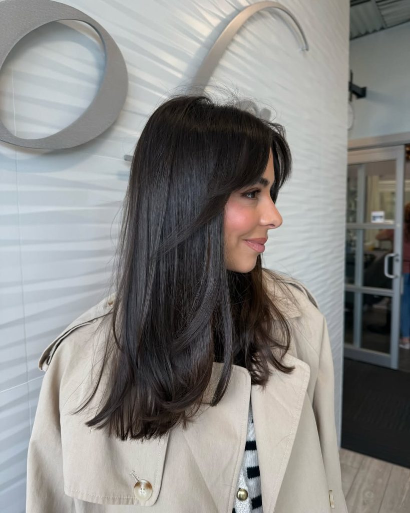 3. Sleek and Shiny Blowout with Face-Framing Layers