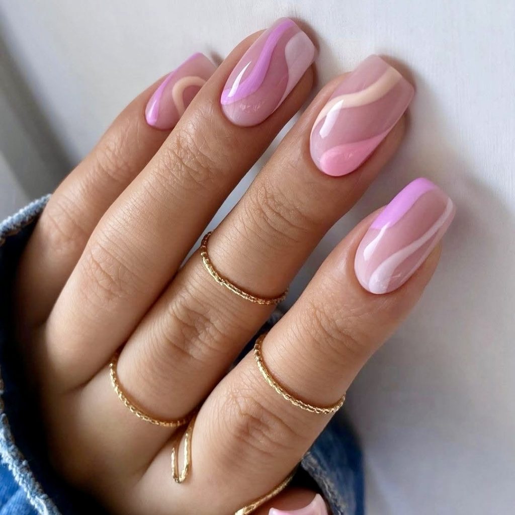 The pink manicure made of soft blush, lilac, and nude caral random designs that are cute & fresh feeling. That design moves in a wave that gives off a spa since it is very comfortable and is applicable to people who like neat yet creative nails. So it is a nothing but making a decoration and looking clever thing while codes like this lighthearted 2025 summer.