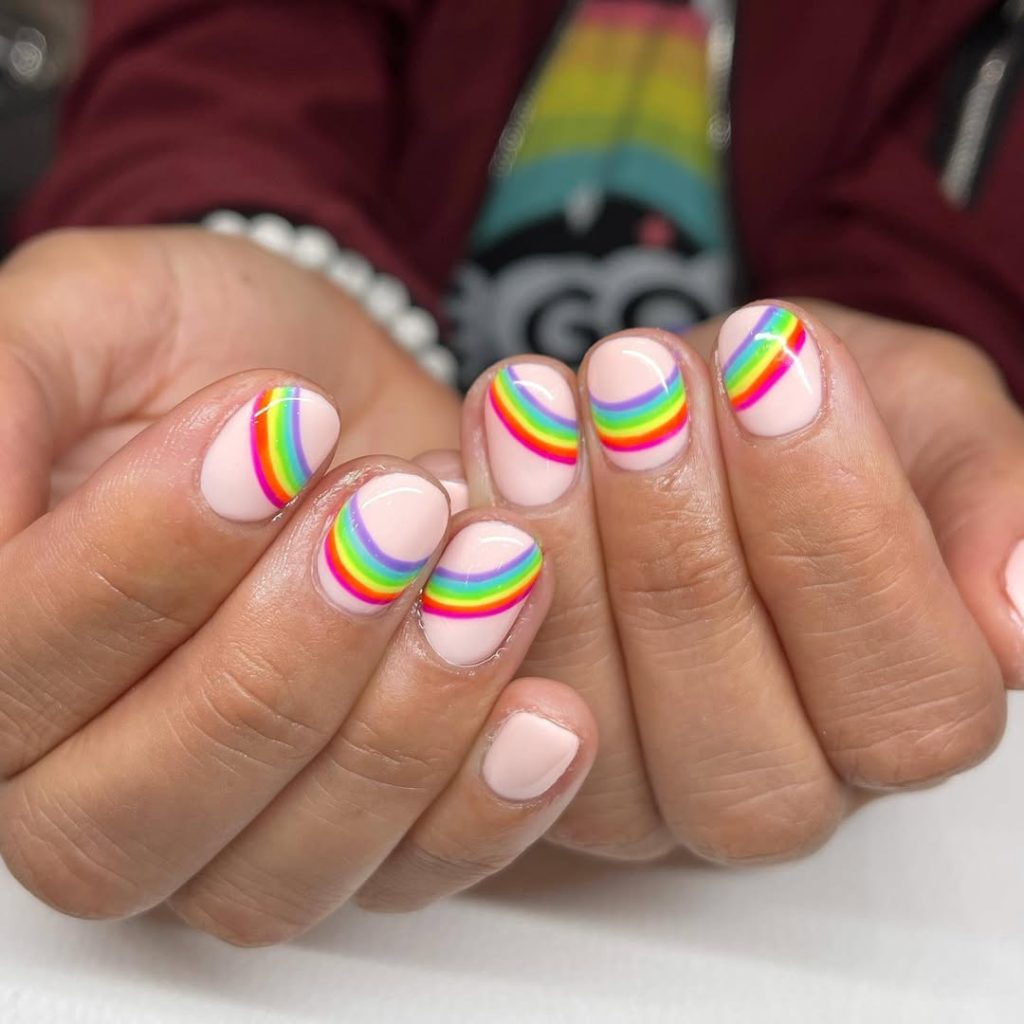 Lively, summer, and full of brightness, this short nails design represents the beauty of Pride with fluid, rainbow curves. The natural warm light adds a beauty color, highlighting these shades as they are against the skin color base. The loosely neat appearance is for those relaxing but still wanting to add a bright piece to the wardrobe. This nail design is just right for a Pride parade or even just for celebrating self-expression.