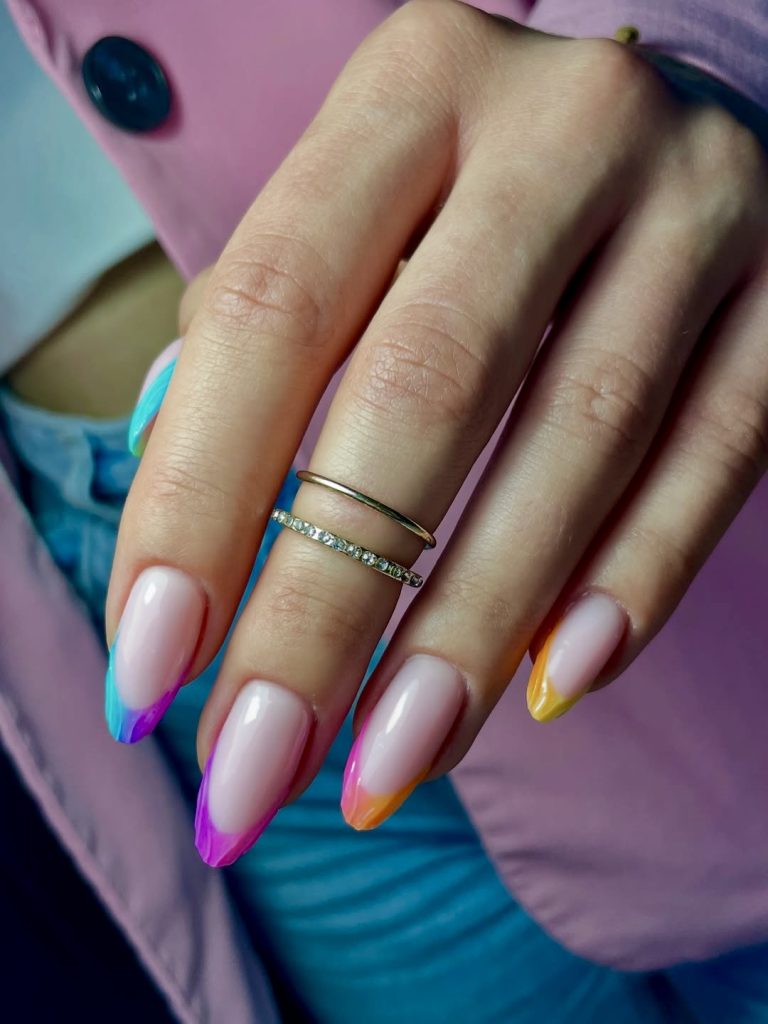 3. Ombre rainbow almond tips
