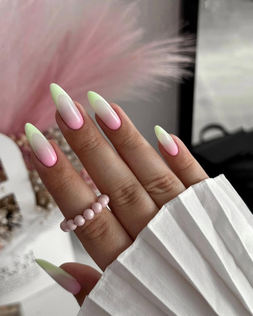 9. Pink and green almond fade