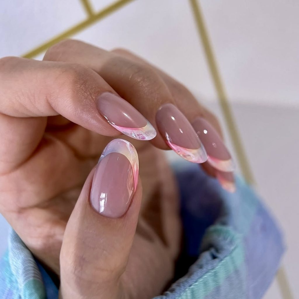 15. Iridescent pastel French on nude ground