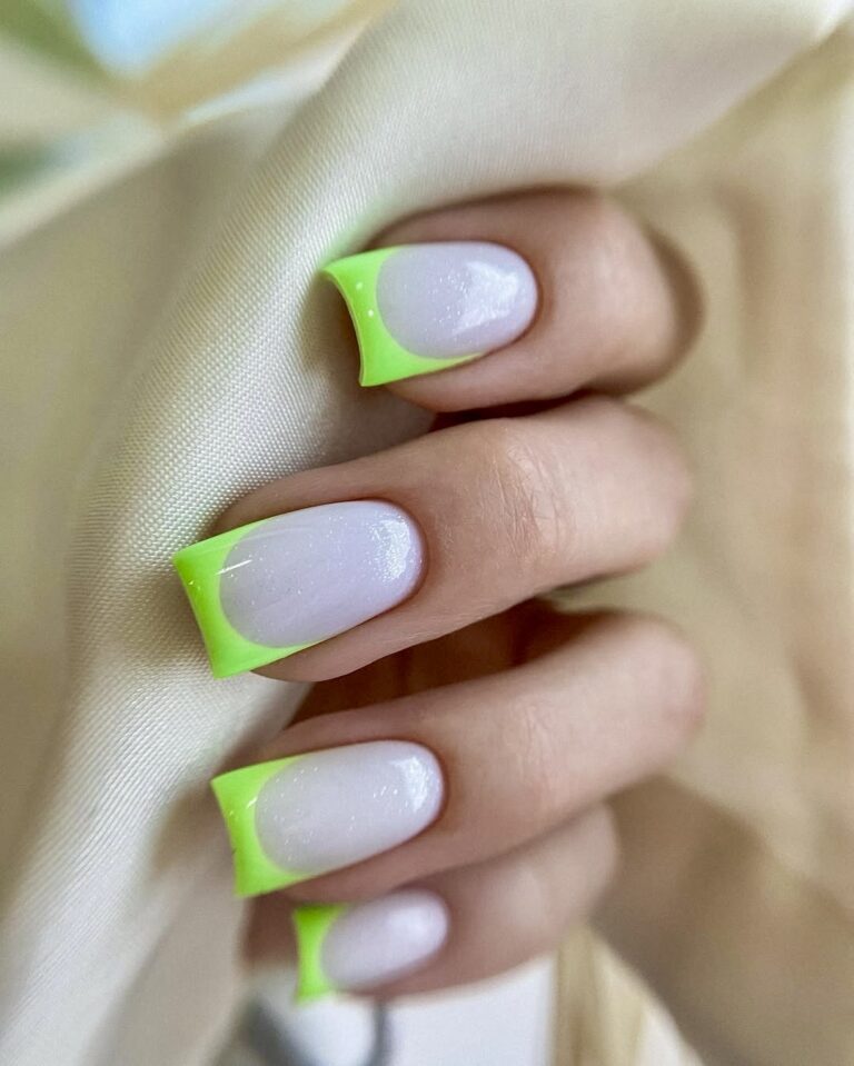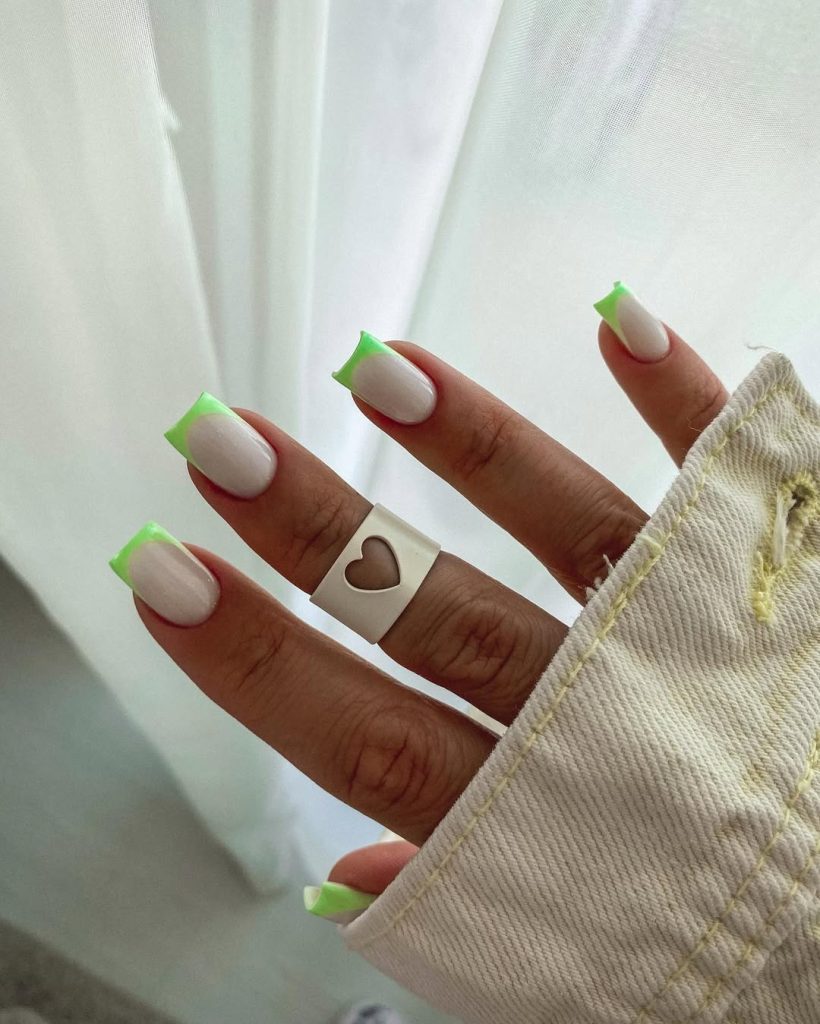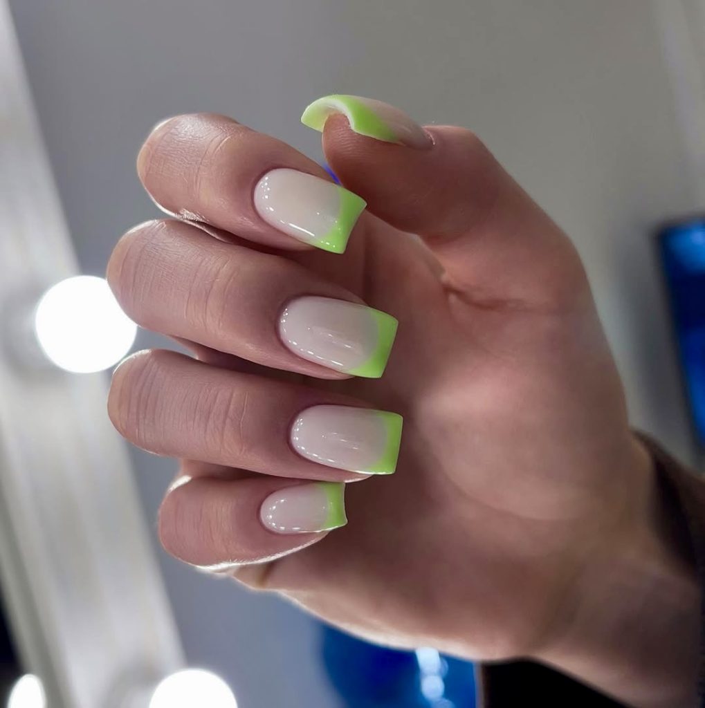 21. Neon Green Ombre Square French