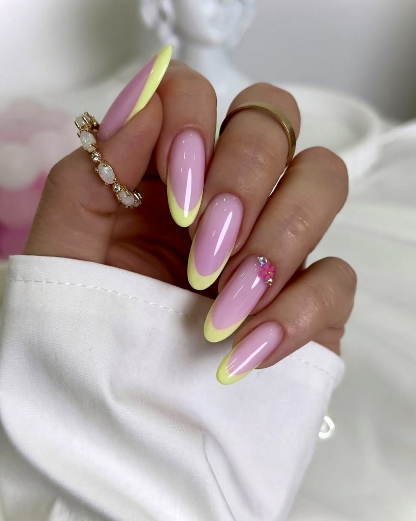 28. Lemon yellow on pastel pink almonds