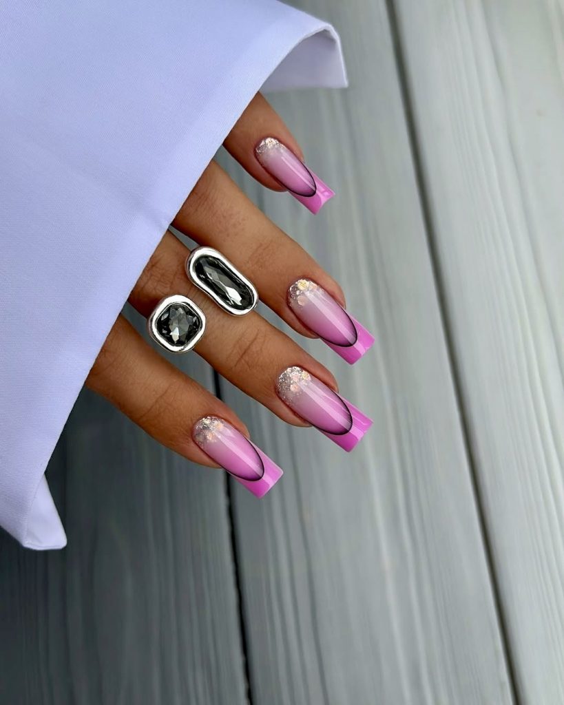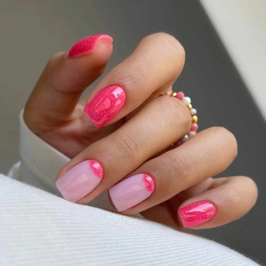 16. Pink Aura French with Glitter Accents