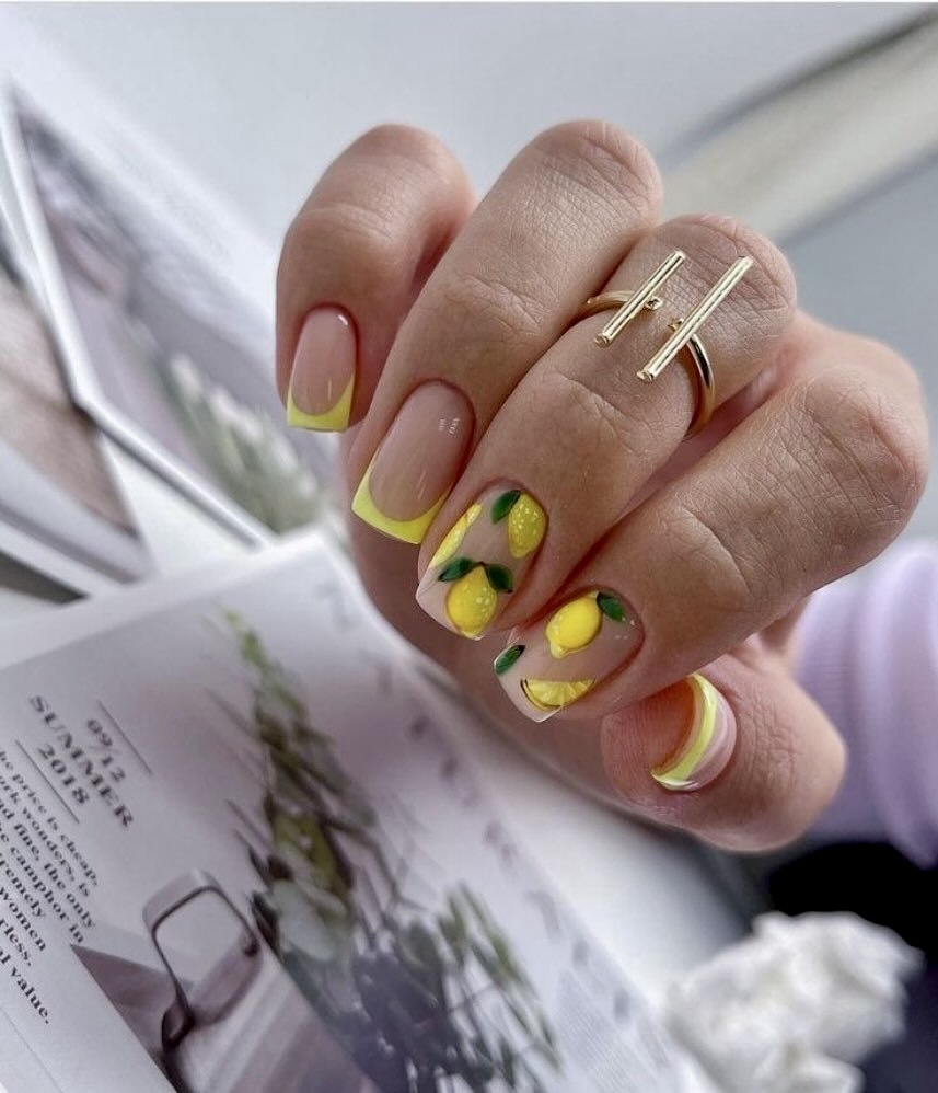4. Lemon yellow French with fruit art