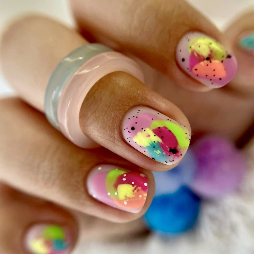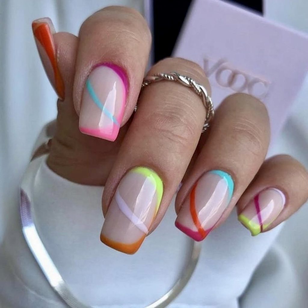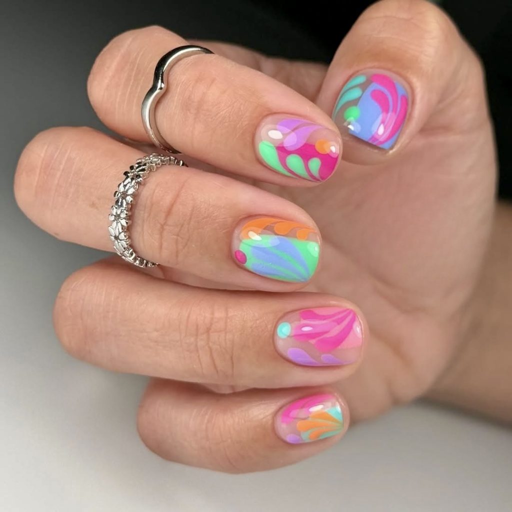 3. Groovy neon swirls on almond tips